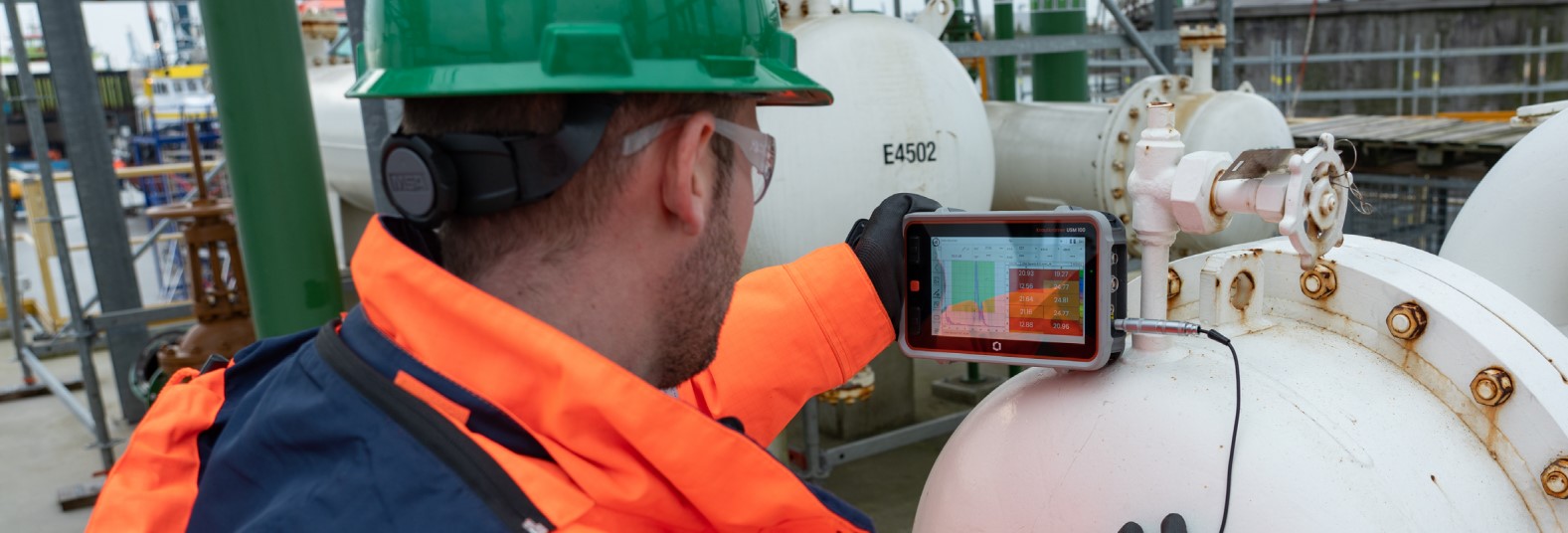 در زمینه کنترل خوردگی و کاهش ضخامت تجهیزات تحت فشار مانند لوله ها، مخازن، مبدل های حرارتی و برج های صنعتی، USM 100 امکان پایش دقیق طول عمر و ایمنی تجهیزات را فراهم می کند.